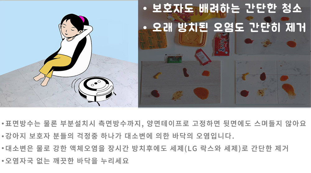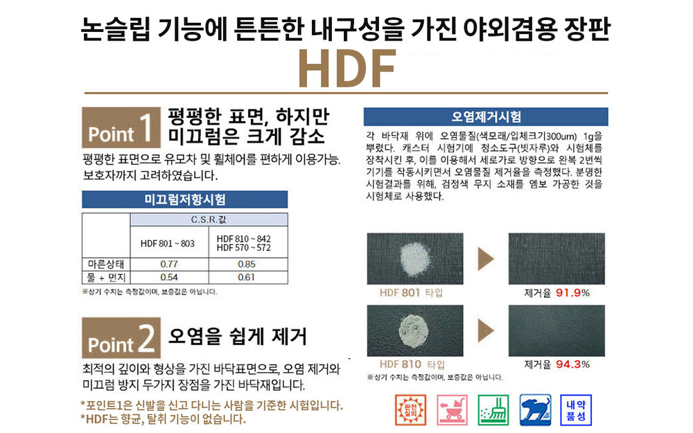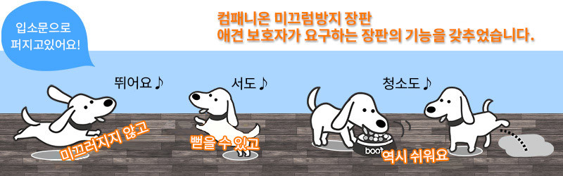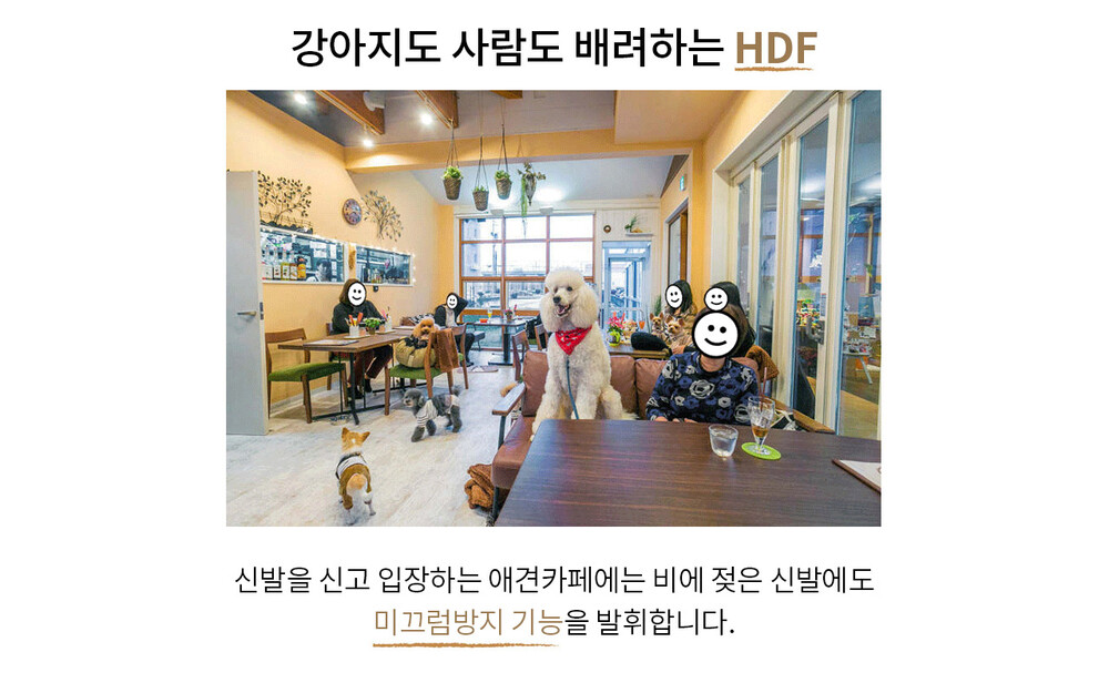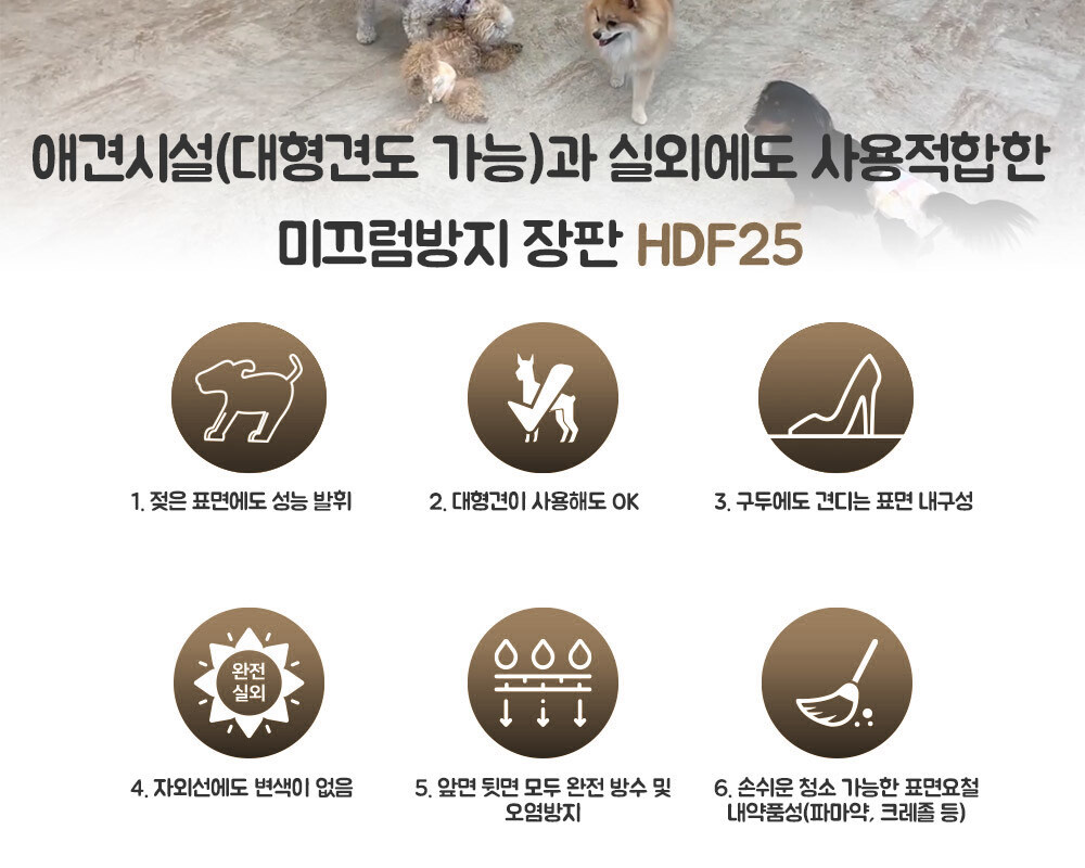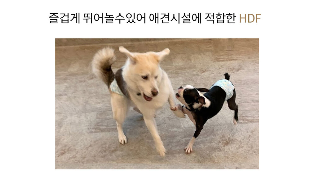 두께 2.5mm (hdf230은 2mm) 로 얇고 단단하여 신을 신는 애견 시설에 적합
