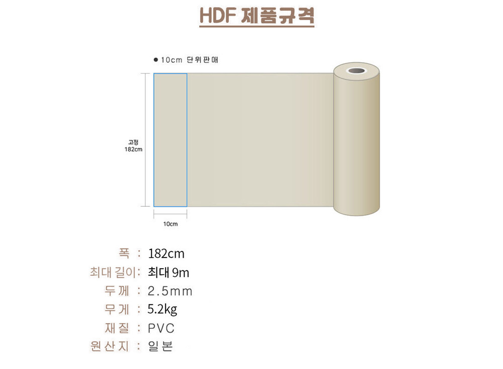 *폭은 180cm 최대 길이 9m까지 하나의 롤.