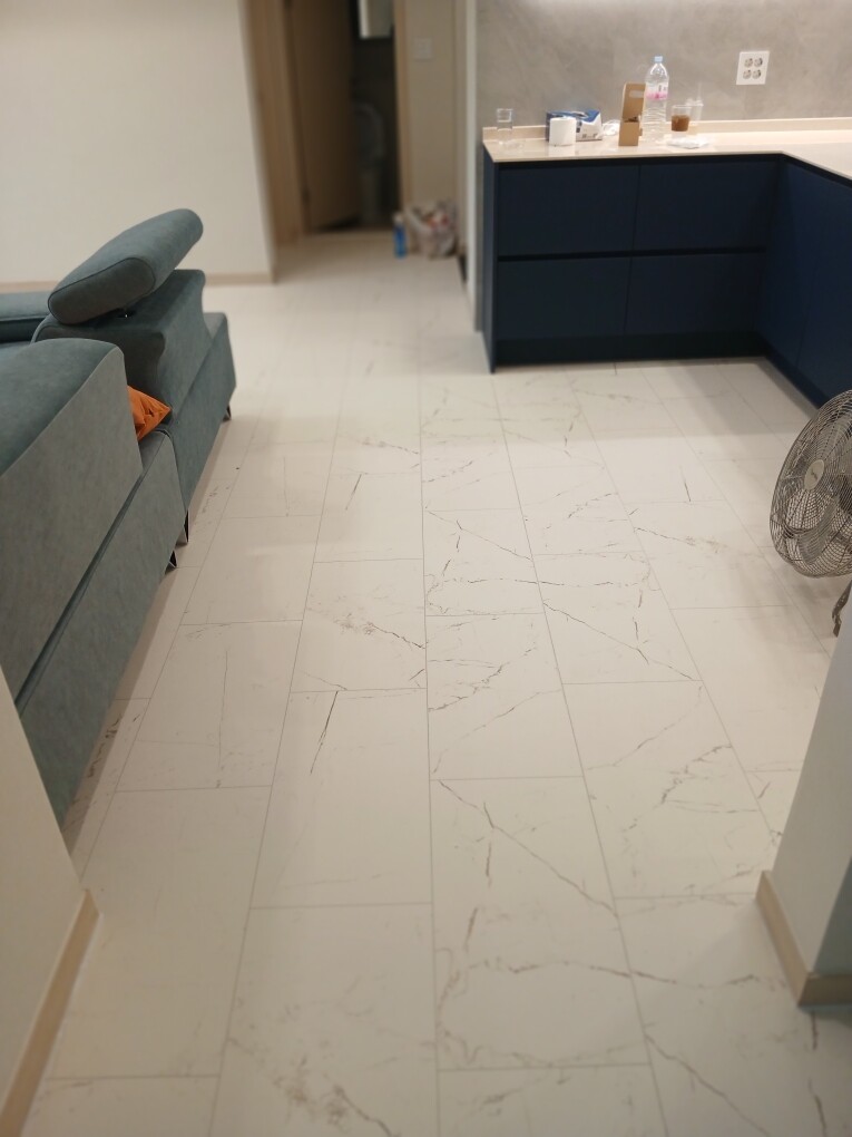 발톱 소리가 적은 IVCF 3509 비앙카. 타일크기 33cmx 66cm 장판전체폭 200cm
